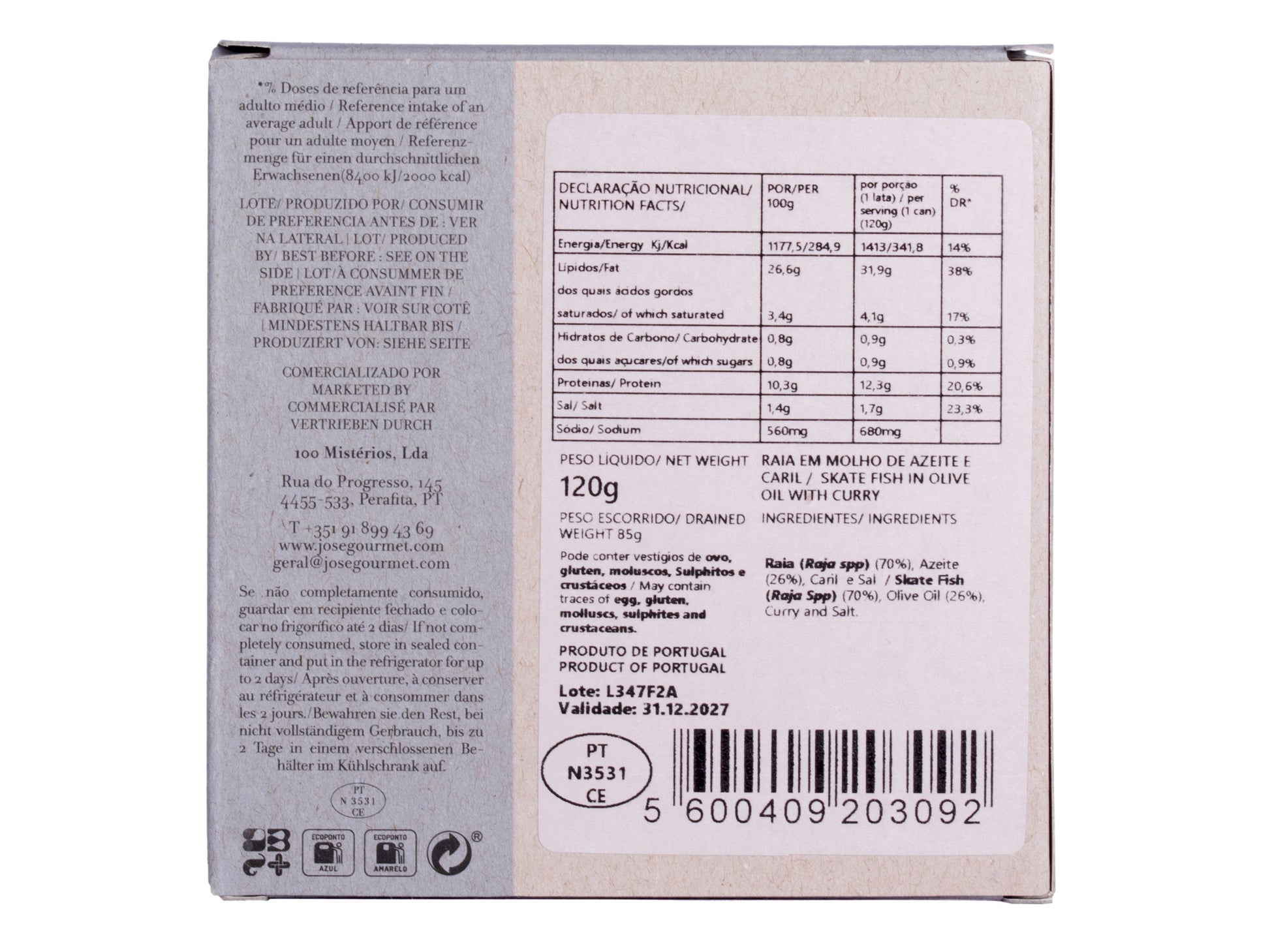 Unsere Konserve mit Rochen in nativem Olivenöl extra erster Güte und duftendem Curry stellt eine seltene und köstliche Ergänzung in der Welt der Meeresfrüchtekonserven dar.