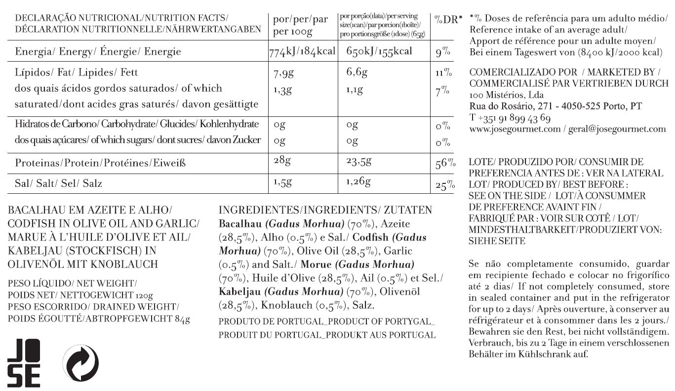 Pêchée dans l’Atlantique Nord-Est, la morue que nous préparons et conservons est associée à l’huile d’olive et à l’ail, préservant l’authenticité de cette traditionnelle combinaison culinaire.