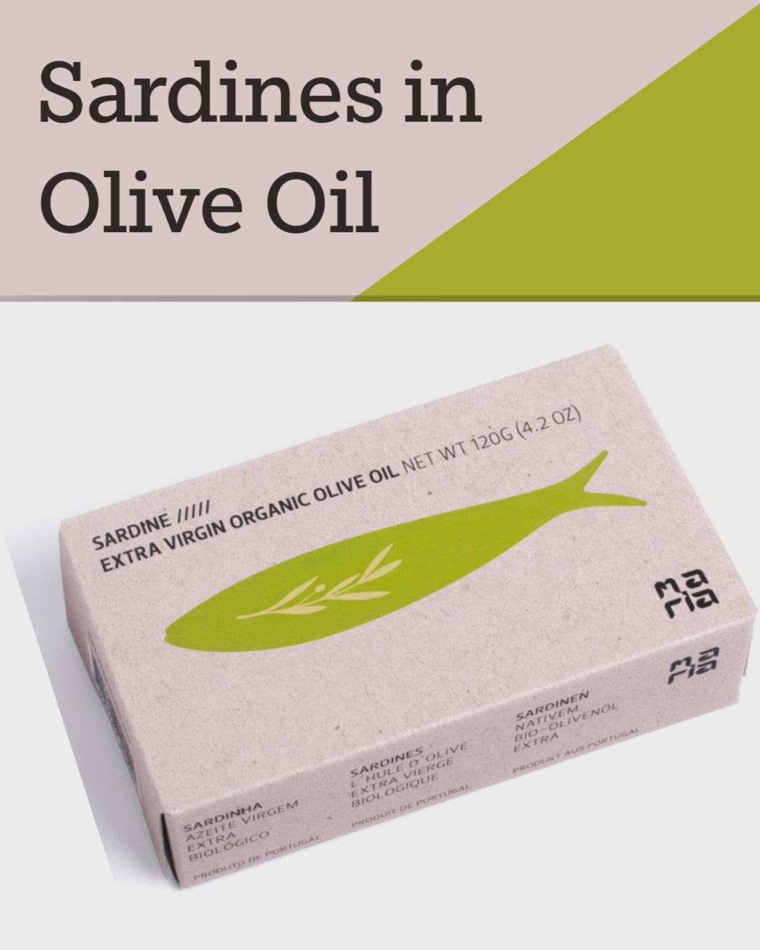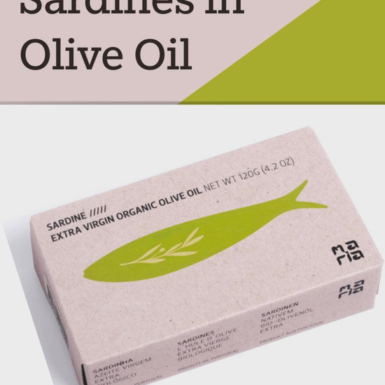 Conserva de sardinhas MARIA ORGANIC, de qualidade superior, regadas com azeite biológico, com um sabor inigualável. O processo de fabricação é artesanal e é usado papel reciclado nas embalagens, o que dá origem a um produto com uma apresentação de excelência e sustentável.